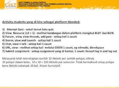 1) Pertama sekali ingin saya mengucapkan tahniah keatas bahan eCONV2015 yang telah di hantar. Sebanyak +-150 bahan telah di hantar untuk di nilai. Insyallah penjurian peringkat saringan akan berlangsung pada penghujung bulan ini. Terdapat dua peringkat saringan, peringkat pertama akan di nilai oleh kumpulan PhD/Senior Staff Politeknik untuk memilih TOP 50 Best VIDEOS. Peringkat kedua pula akan di nilai oleh beberapa Pengarah/TPA Poli di mana mereka akan hanya melihat 50 video terpilih itu untuk menentukan TOP 40 Best VIDEOS yang akan di hantar ke CPSC, Manila bagi penjurian peringkat akhir. Saya amat kagum dengan 'effort' pensyarah dan pelajar untuk menghasilkan video-video ini, walaubagaimanapun masih terdapat sebilangan video yang masih berbentuk Video P&P dan bukan Video Perkongsian Pendapat/Perspektif sepertimana yang dikehendaki oleh eCONV2015. Video P&P ini masih boleh di gunakan samada dalam kelas peribadi/platfom BL masing-masing atau di sunting semula untuk pertanding SCORMKING, eDOLA2015.